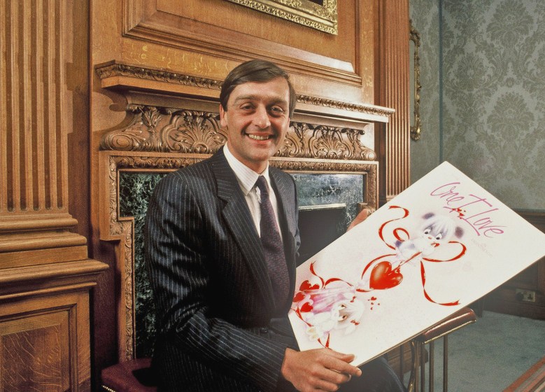 The Duke of Westminster shows off a Valentine’s card sent to him by his staff